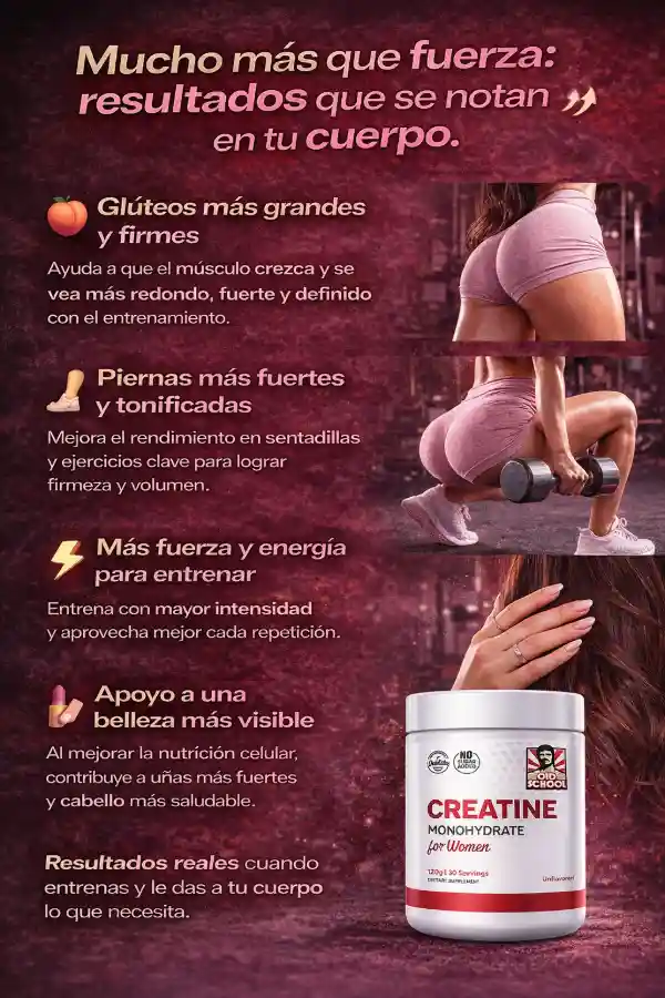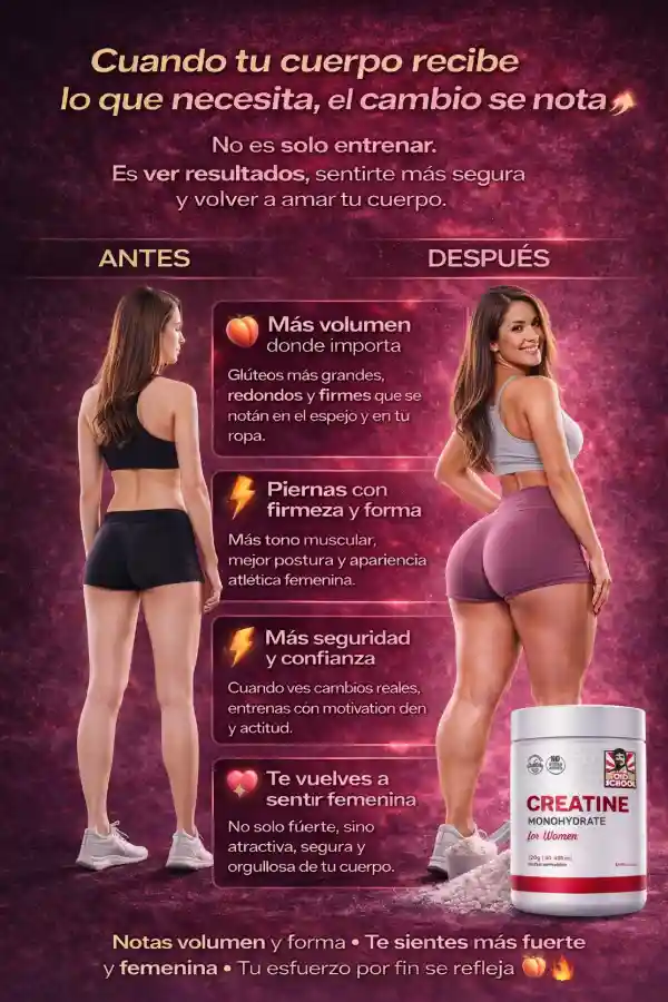 👉 La Creatina Monohidratada para Mujeres actúa donde el ejercicio solo no llega, ayudando a mejorar la fuerza, acelerar la recuperación y activar el crecimiento real de glúteos y piernas 🍑🔥